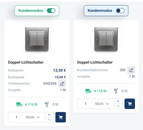 Die Kundenprozesse Ihres Unternehmens werden im commerce GRID individuell abgebildet. Kunden können zum Beispiel eigene Artikelnummern verwenden und über die Funktion “Kundenmodus” direkt mit ihren Endabnehmern vor dem Computer planen, ohne dass die Artikelpreise sichtbar sind.