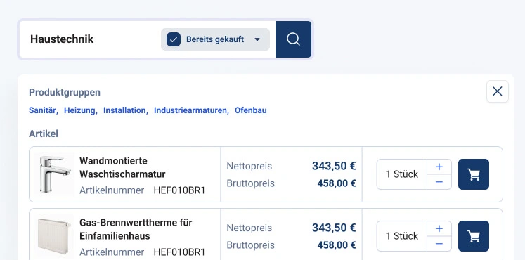Individuelle Filter und Kategorie-Navigation für kurze Wege zum Bedarfsartikel