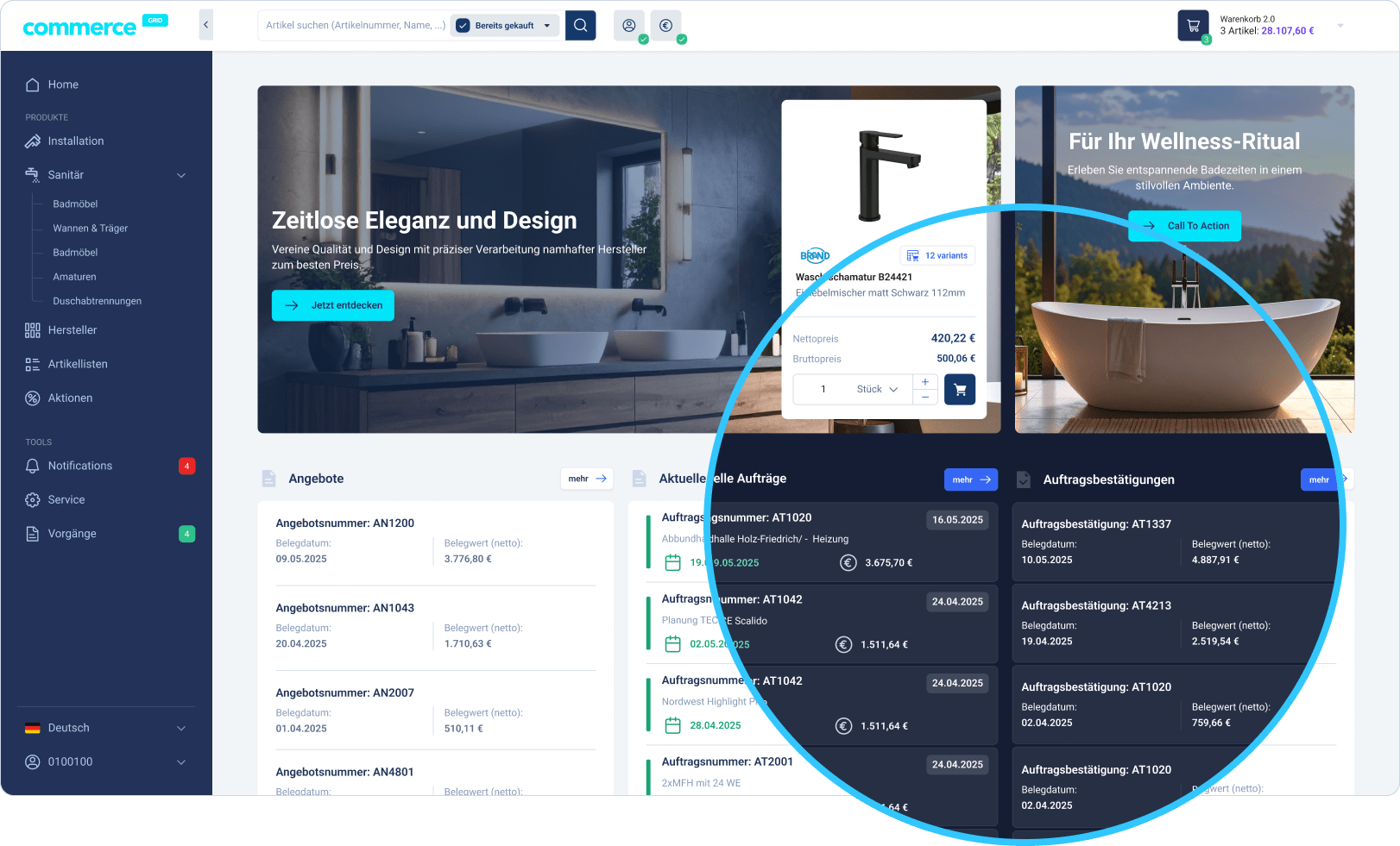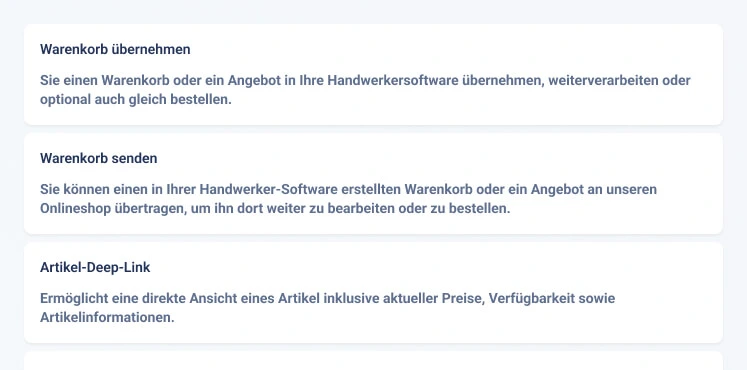 Das commerce GRID wird über individuelle Schnittstellen zum “Schaufenster” Ihrer Systemlandschaft: ERP, PIM, CRM, Lagerverwaltung, DMS, Telefonanlage und mehr. Kunden erhalten eine wertvolle Transparenz und eine Informationstiefe, die Rückfragen vermeidet.